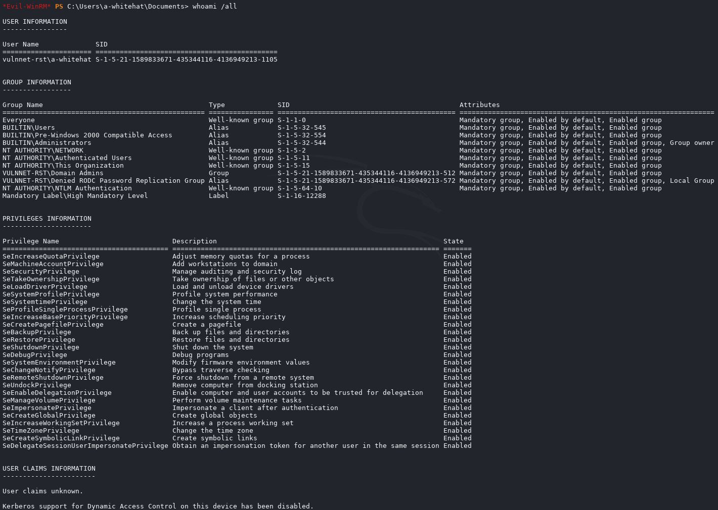 *Evil-WinRM* PS C:\Users\a-whitehat\Documents> whoami